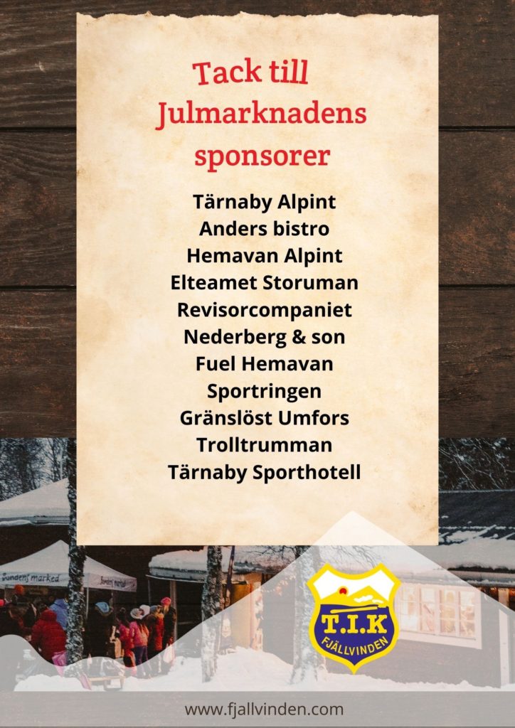 Tack till Julmarknadens sponsorer Fjällvinden vill tacka alla sponsorer som på ett eller annat sätt bidrog till årets julmarknad på Udden. Ni är guld värda❤